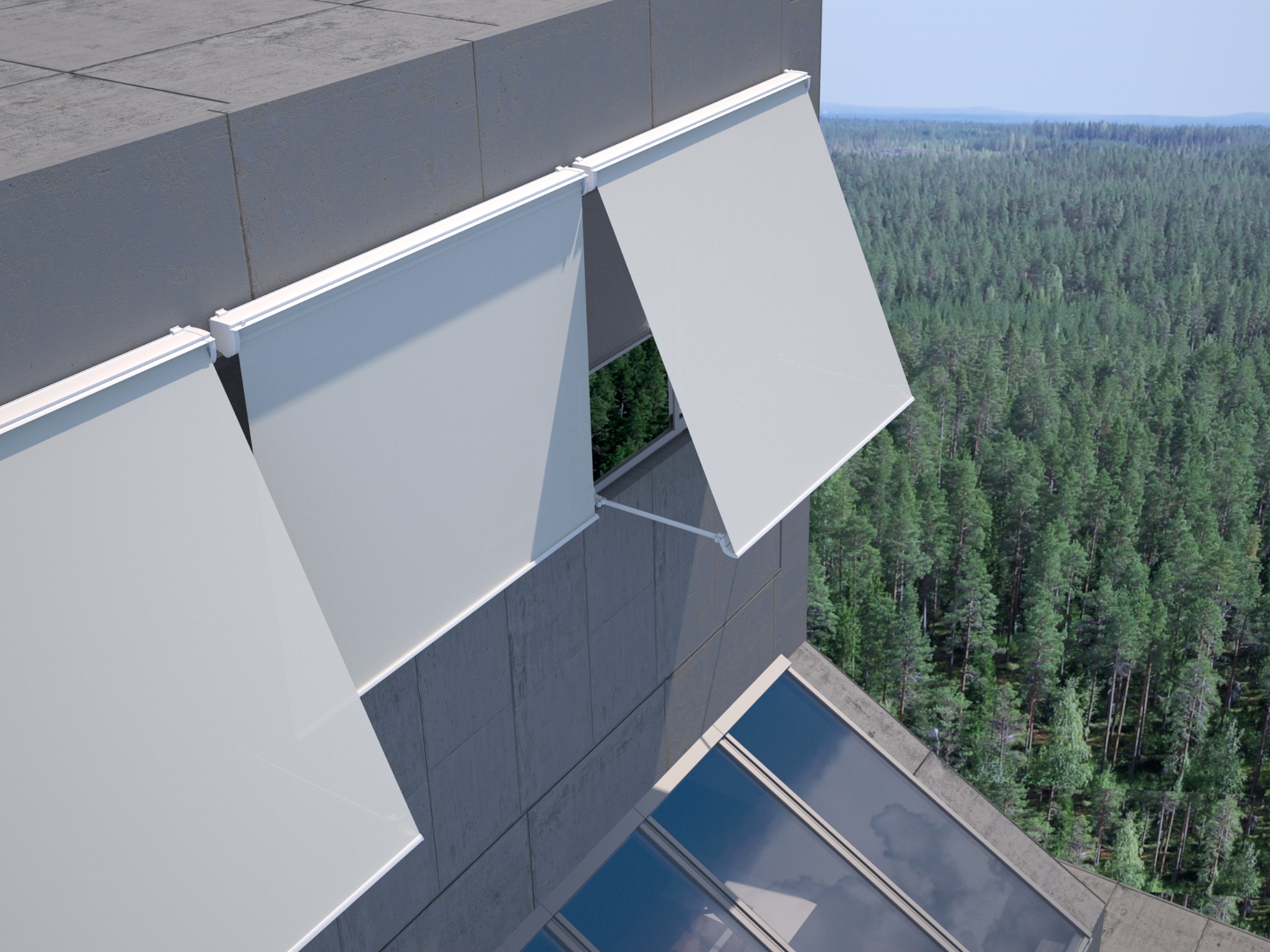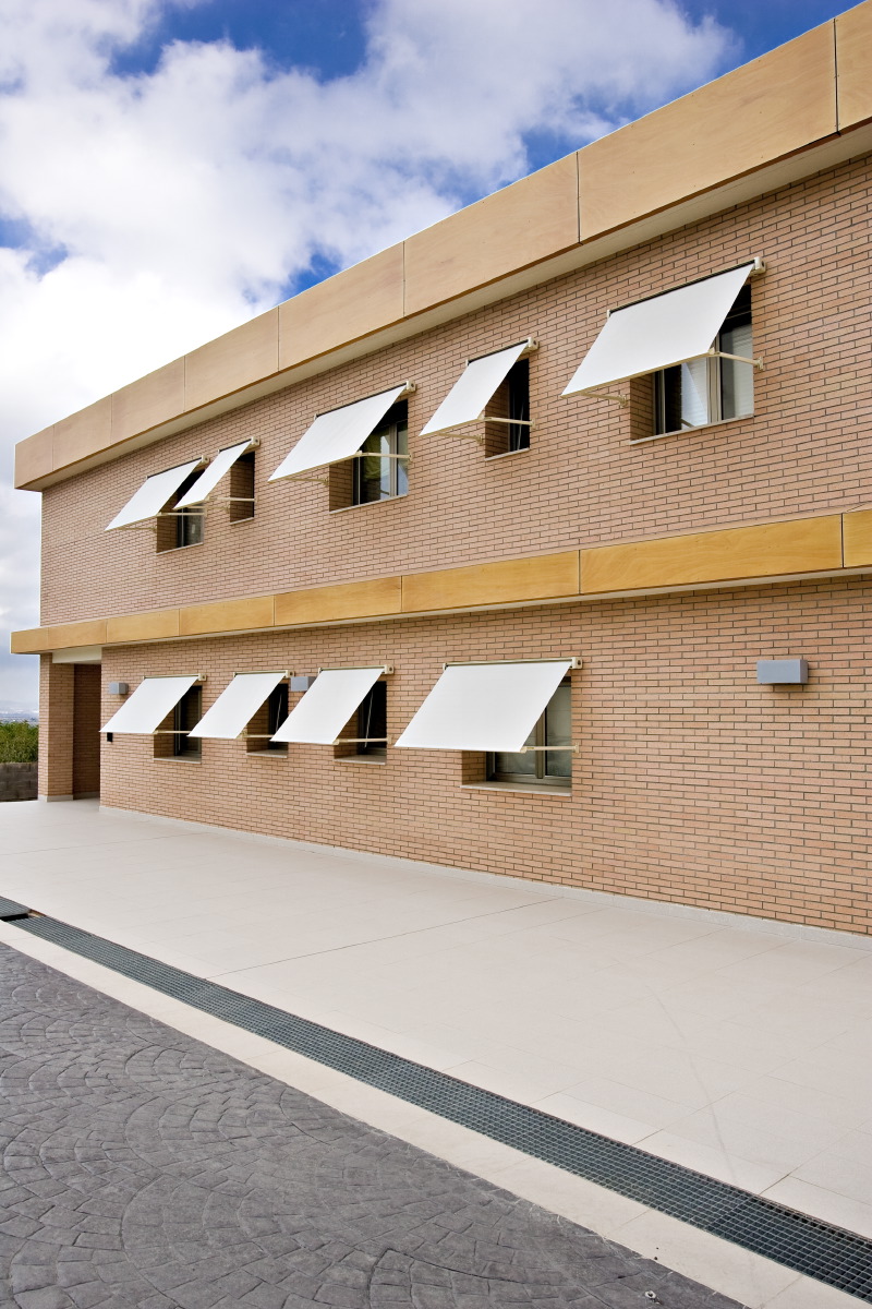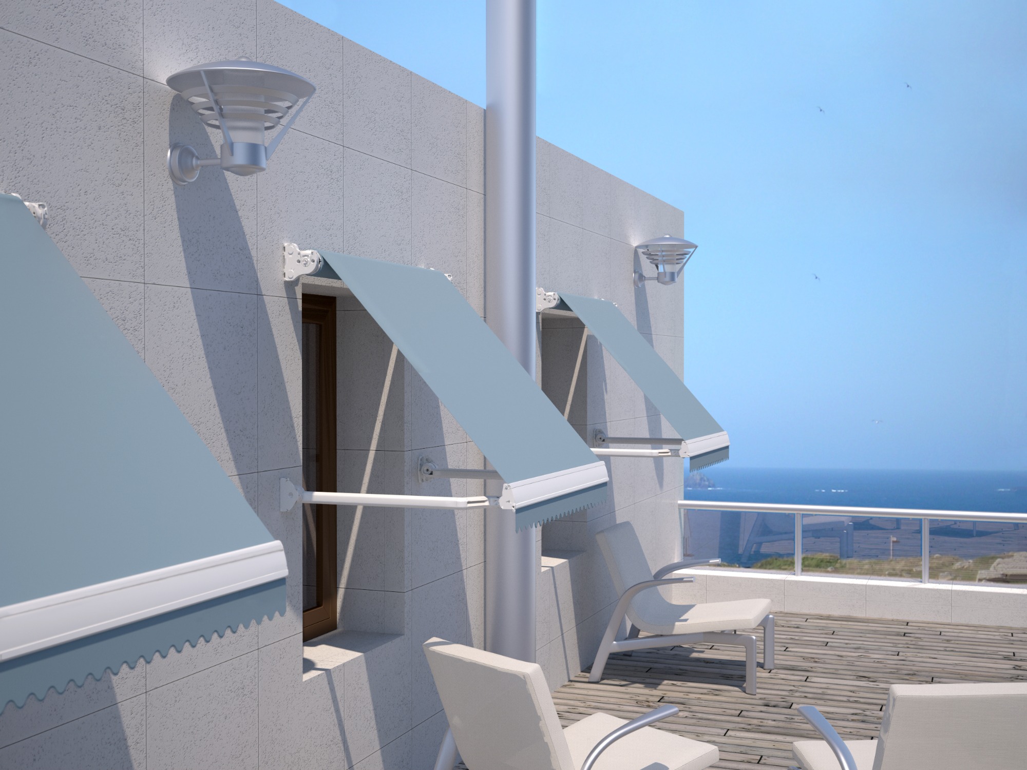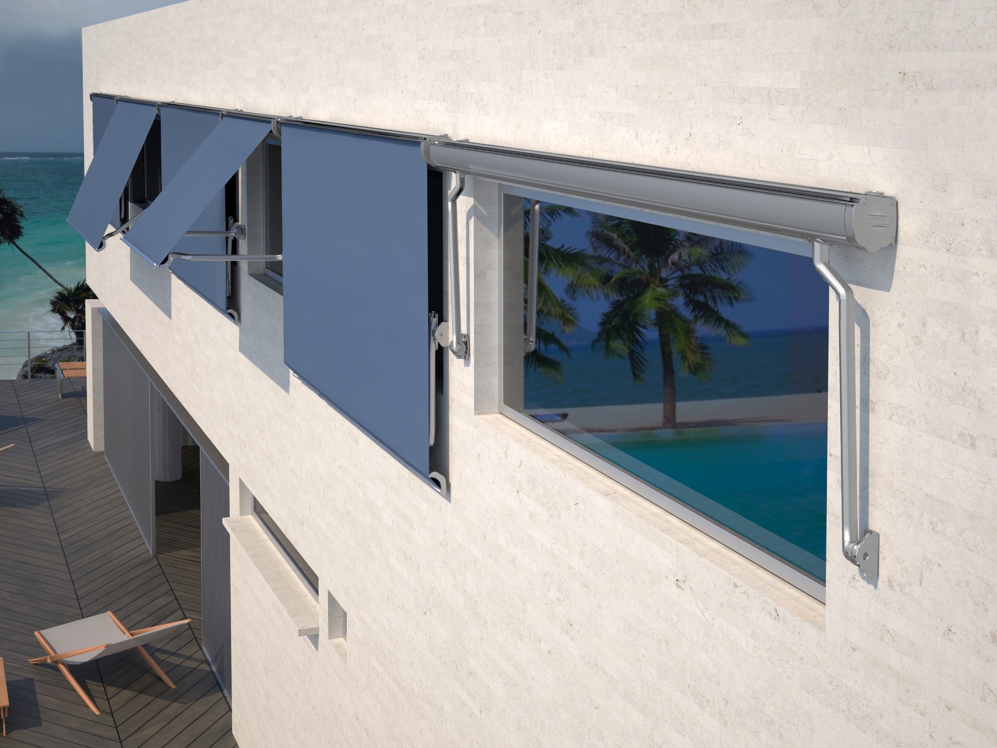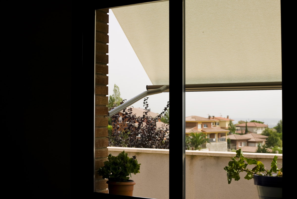 Toldo ideal para ventanas y galerías, accionamiento manual o motorizado.
